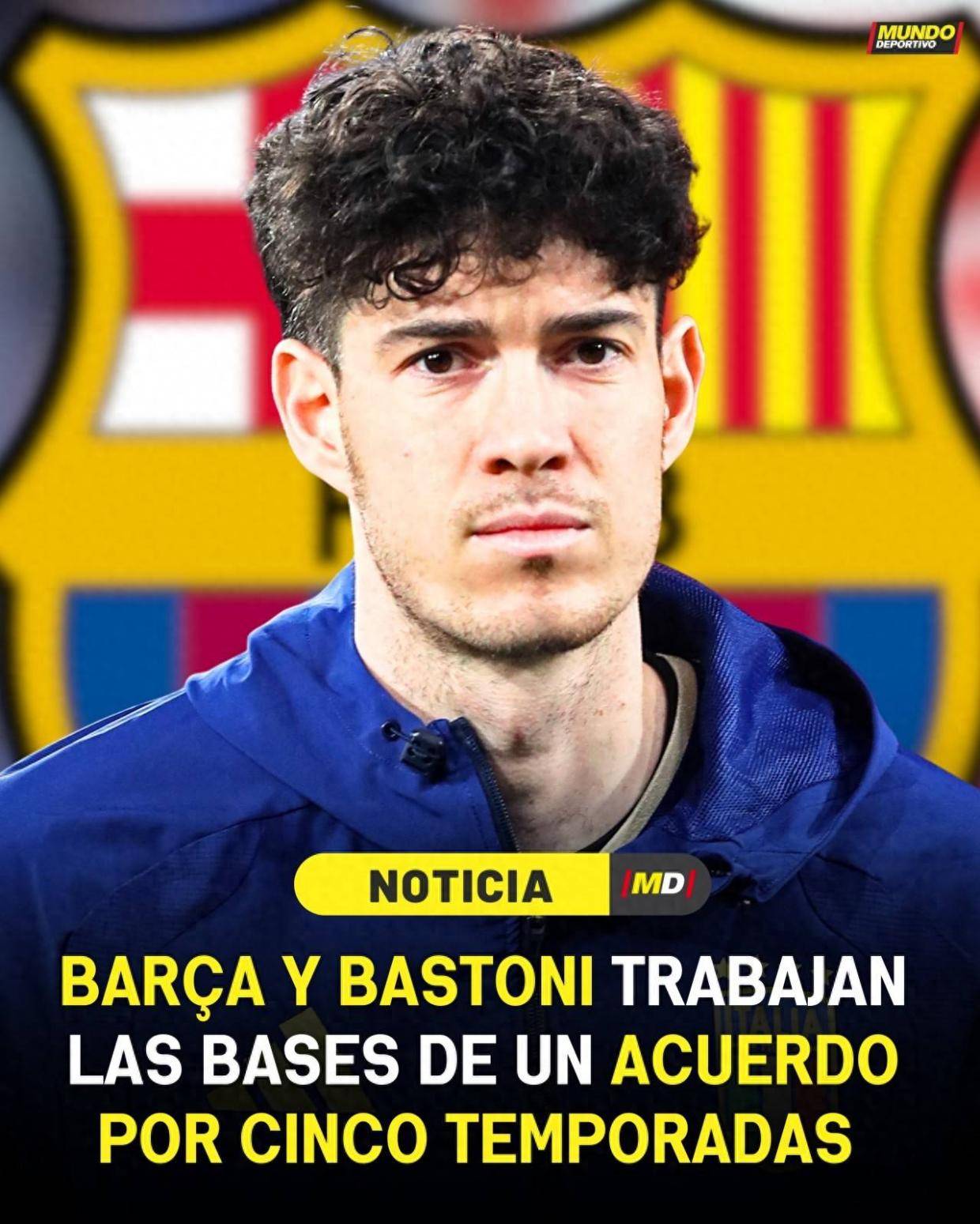 来自意大利媒体《米兰体育报》的最新消息,国际米兰方面已经知晓巴斯托尼与巴萨达成了初步协议,5年合同,至2031年,国际米兰标价7000万欧元,这与球员在德转的身价持平。
